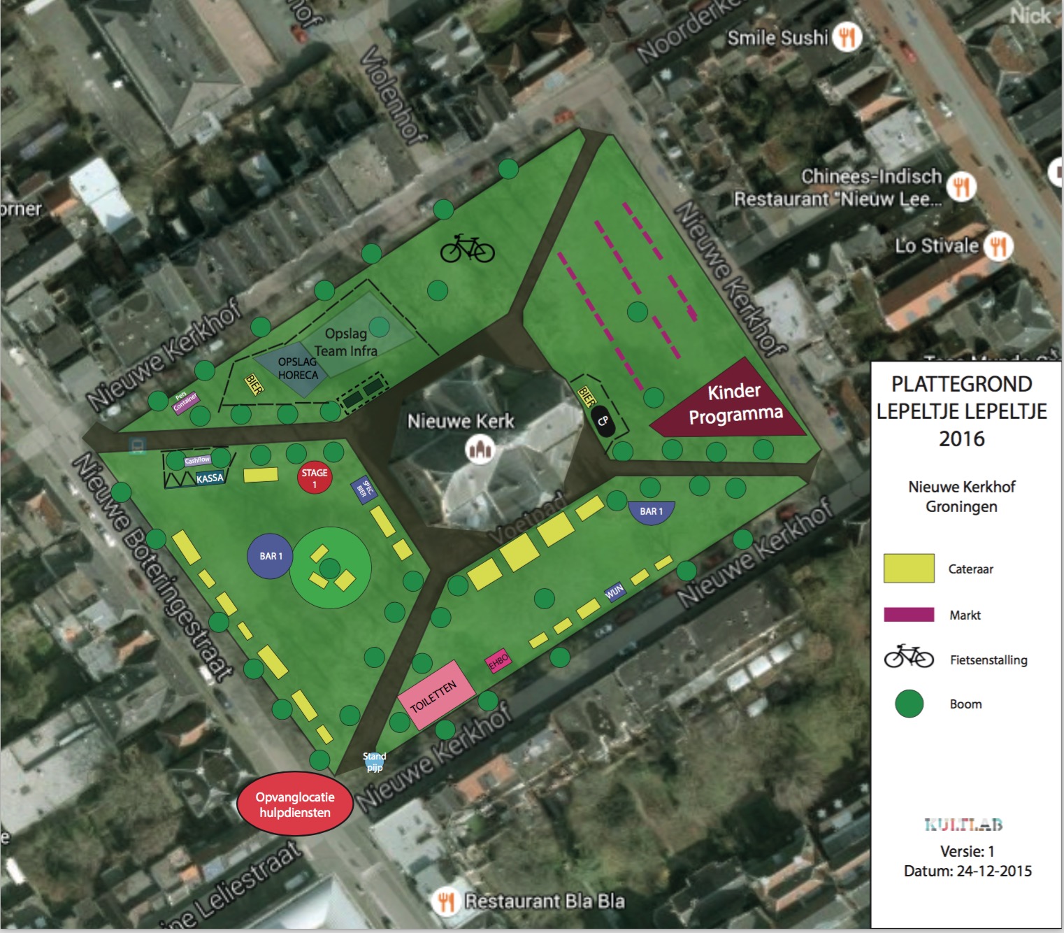 Het culinair en cultureel foodfestival Lepeltje Lepeltje heeft bij de gemeente Groningen een vergunning aangevraagd om dit festival begin juli 2016 te organiseren op de grasvelden rond de Nieuwe Kerk.